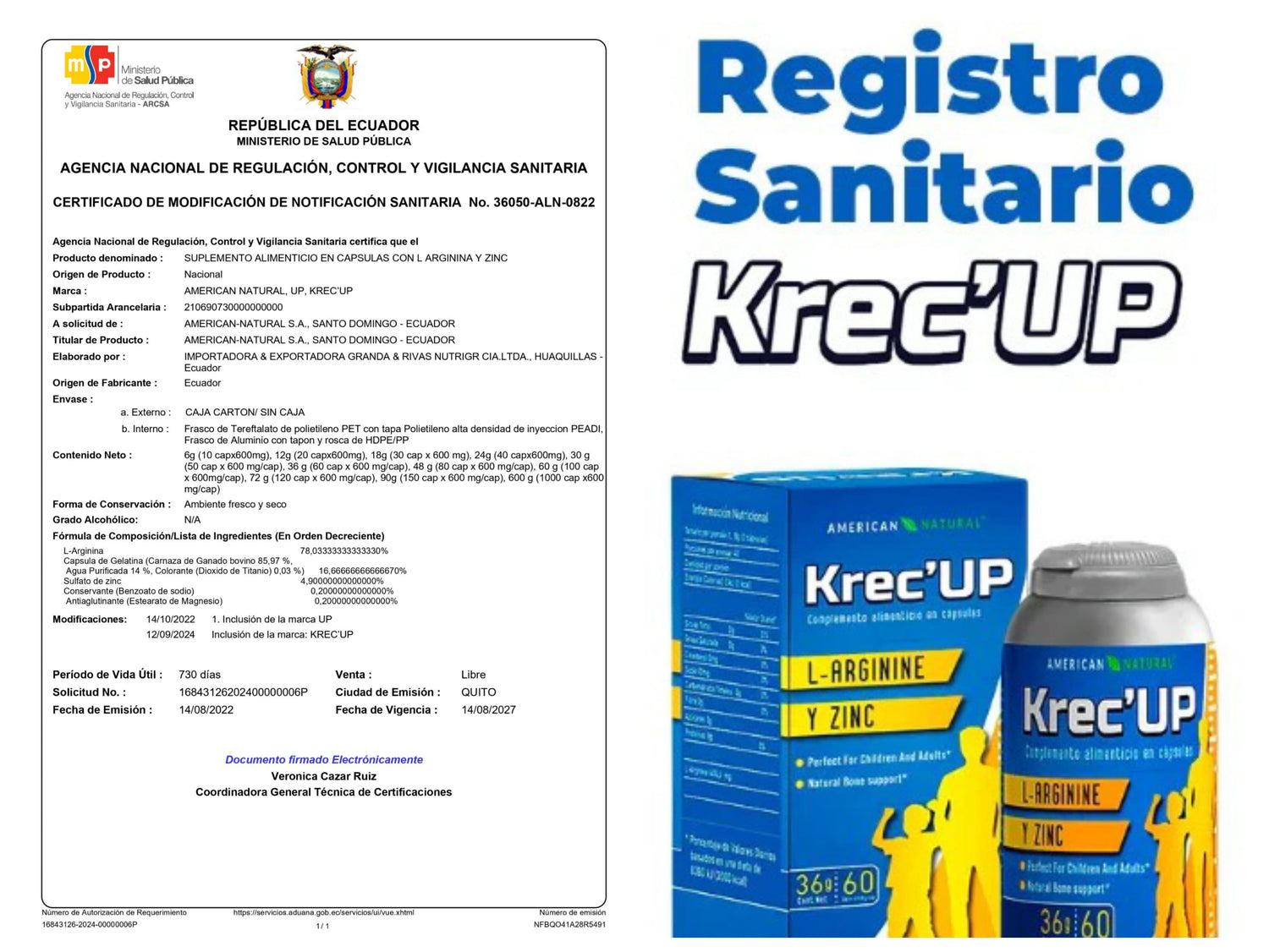 En American Natural, nos comprometemos con la calidad desde el origen hasta el producto final. Krec´UP, nuestro suplemento estrella, es elaborado con tecnología de vanguardia, garantizando pureza, potencia y máxima efectividad en cada cápsula.