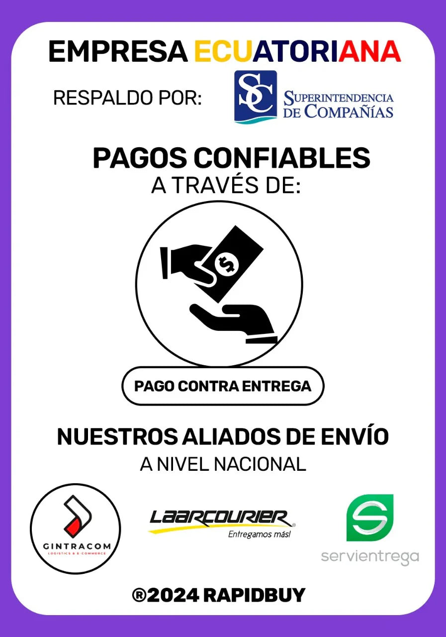 🔒 ¡Paga en el momento que recibas tu producto! Cómodo, fácil y seguro.